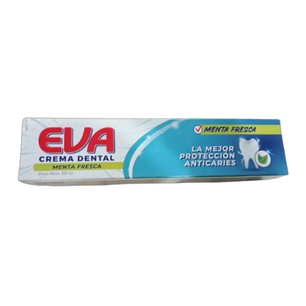 EVA Toothpaste 125 g with refreshing mint flavor. Ideal for daily oral hygiene, helping protect enamel, reduce plaque, and keep breath fresh.